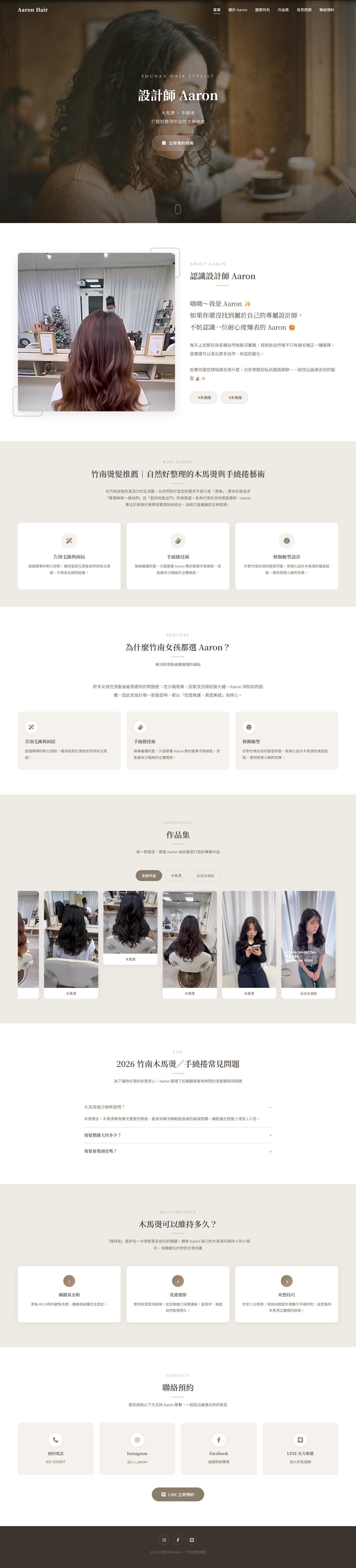 網站類型:一頁式形象網站 客戶名稱:Aaron Hair 技術架構:RWD, HTML, CSS, JavaScript 網站網址:https://pinms.com.tw/aaron-hair 本作品為「Aaron Hair」量身打造的一頁式形象網站,以單頁捲動方式呈現品牌形象與服務內容,搭配流暢的動態效果與響應式排版,提供良好的使用者體驗。 產業類別:已發布