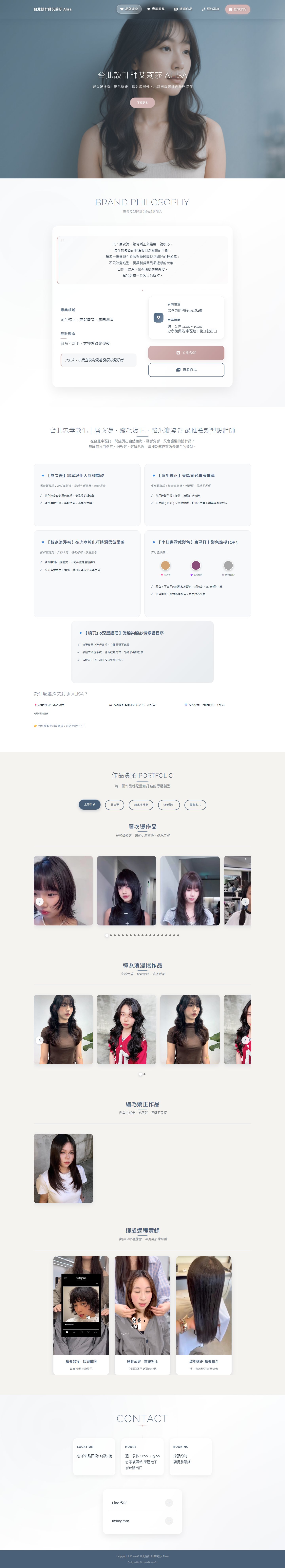 網站類型:一頁式形象網站 客戶名稱:台北設計師艾莉莎 Alisa 技術架構:RWD, HTML, CSS, JavaScript 網站網址:https://pinms.com.tw/alisa-hair 本作品為「台北設計師艾莉莎 Alisa」量身打造的一頁式形象網站,以單頁捲動方式呈現品牌形象與服務內容,搭配流暢的動態效果與響應式排版,提供良好的使用者體驗。 產業類別:已發布