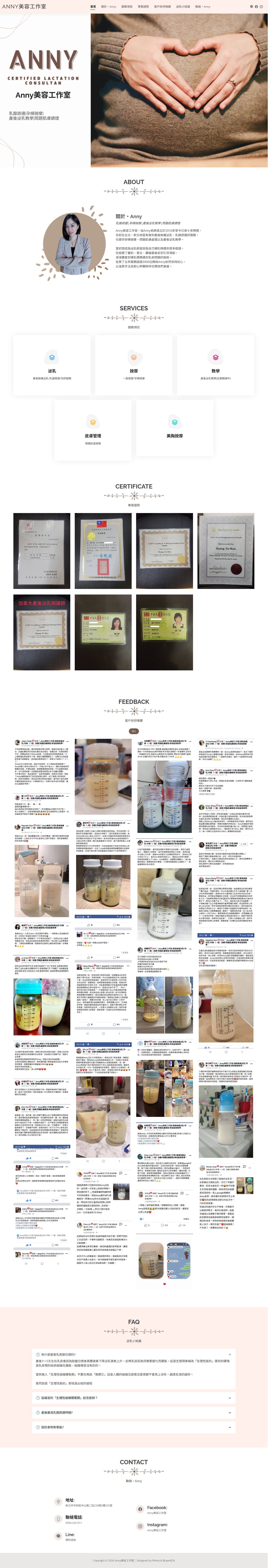 網站類型:一頁式形象網站 客戶名稱:Anny美容工作室 技術架構:RWD, HTML, CSS, JavaScript 網站網址:https://pinms.com.tw/anny-beautician 本作品為「Anny美容工作室」量身打造的一頁式形象網站,以單頁捲動方式呈現品牌形象與服務內容,搭配流暢的動態效果與響應式排版,提供良好的使用者體驗。 產業類別:已發布