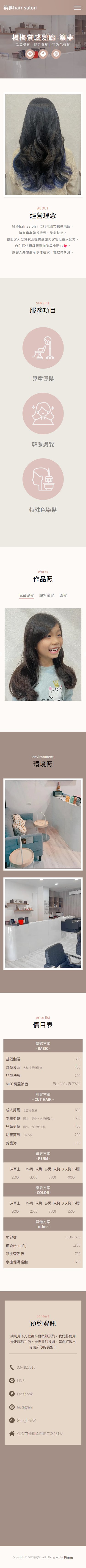 網站類型:一頁式形象網站 客戶名稱:楊梅質感髮廊-築夢hair salon 技術架構:RWD, HTML, CSS, JavaScript 網站網址:https://pinms.com.tw/build-dream 本作品為「楊梅質感髮廊-築夢hair salon」量身打造的一頁式形象網站,以單頁捲動方式呈現品牌形象與服務內容,搭配流暢的動態效果與響應式排版,提供良好的使用者體驗。 產業類別:已發布