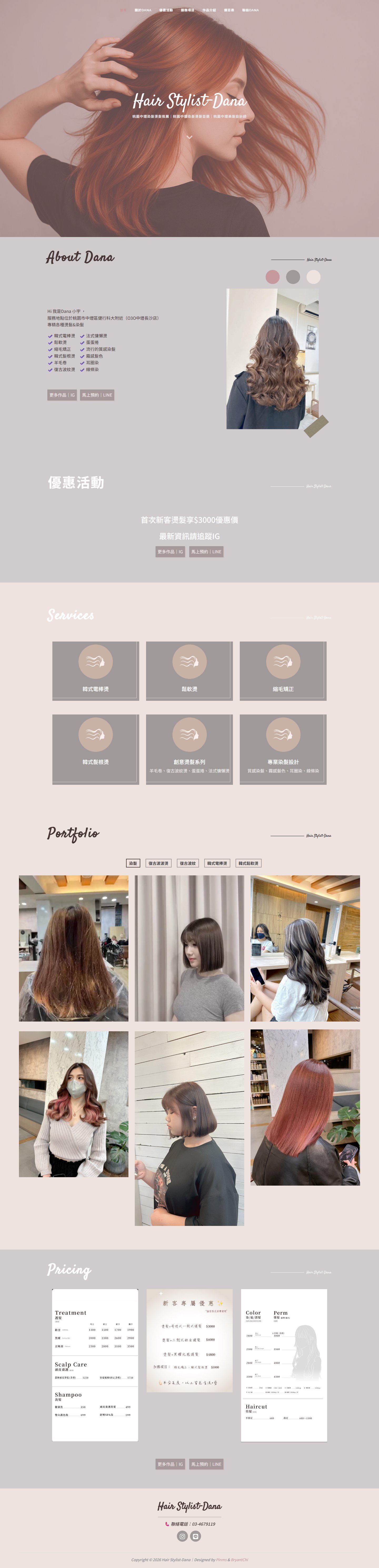 網站類型:一頁式形象網站 客戶名稱:Hair Stylist-Dana 技術架構:RWD, HTML, CSS, JavaScript 網站網址:https://pinms.com.tw/dana-hair 本作品為「Hair Stylist-Dana」量身打造的一頁式形象網站,以單頁捲動方式呈現品牌形象與服務內容,搭配流暢的動態效果與響應式排版,提供良好的使用者體驗。 產業類別:已發布