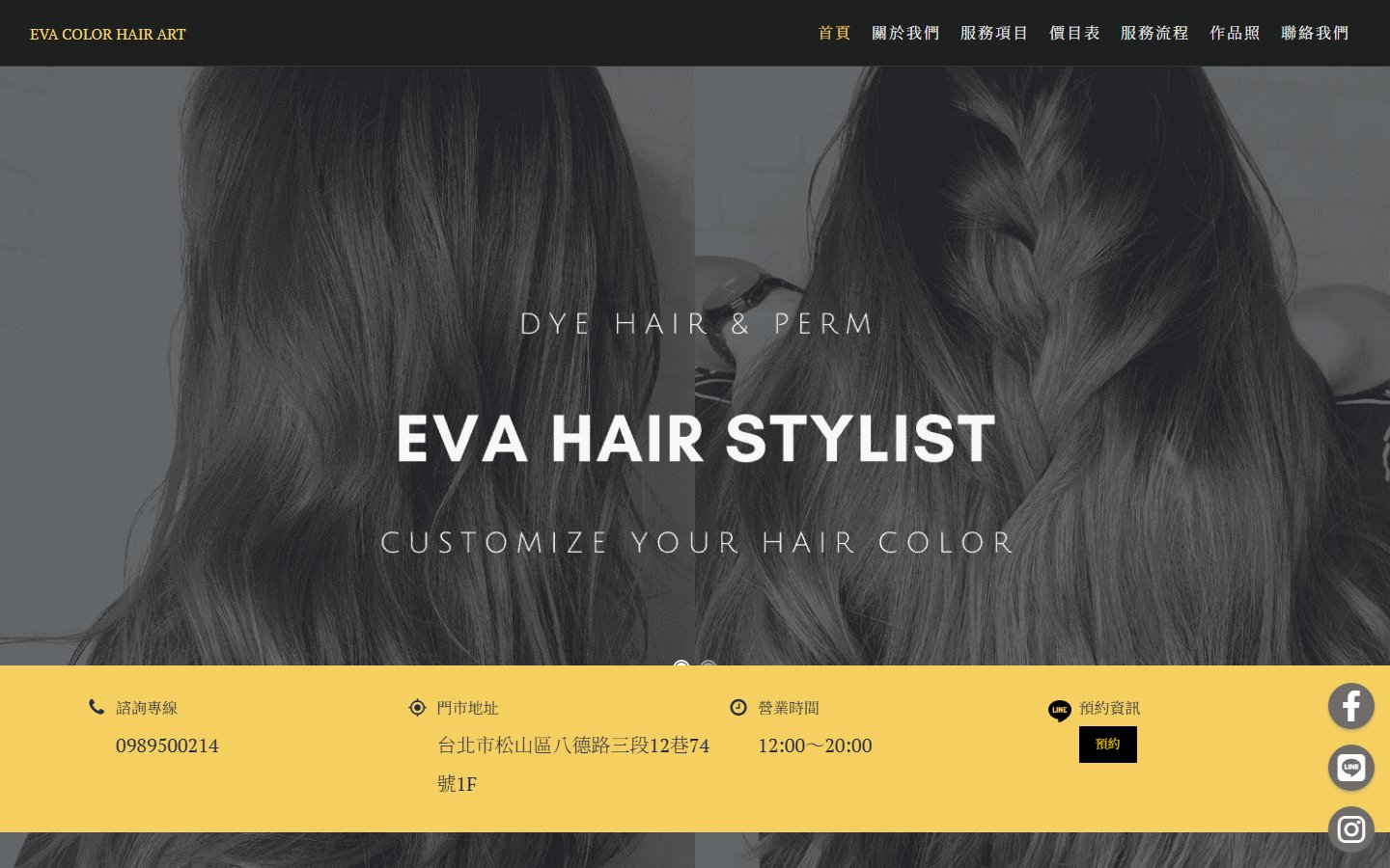 網站類型:一頁式形象網站 客戶名稱:台北大安區東區美髮推薦Eva Color Hair Art專業染髮燙護設計師 技術架構:RWD, HTML, CSS, JavaScript 網站網址:https://pinms.com.tw/evahair 本作品為「台北大安區東區美髮推薦Eva Color Hair Art專業染髮燙護設計師」量身打造的一頁式形象網站,以單頁捲動方式呈現品牌形象與服務內容,搭配流暢的動態效果與響應式排版,提供良好的使用者體驗。 產業類別:已發布