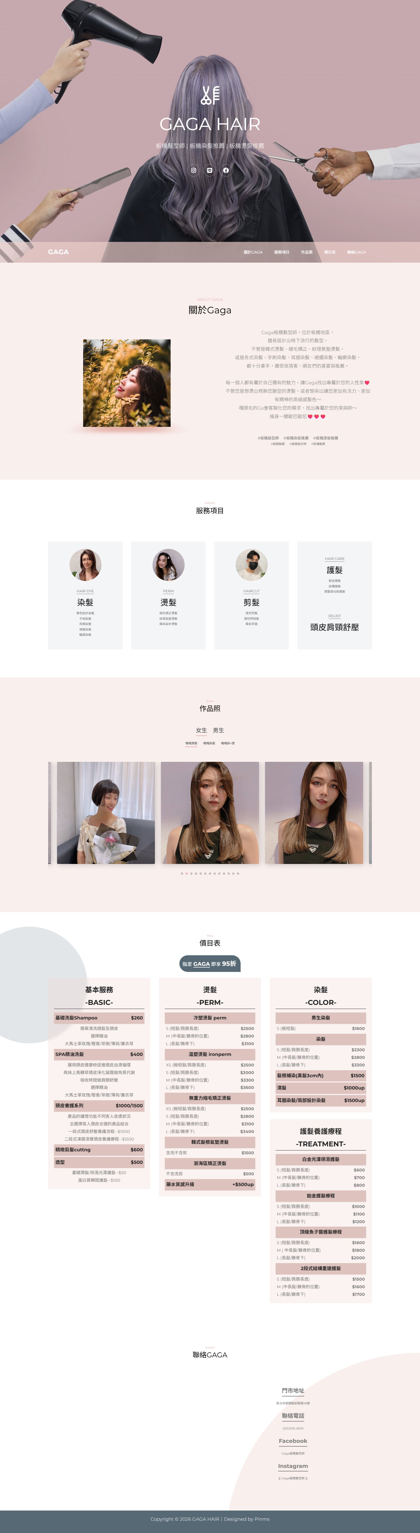 網站類型:一頁式形象網站 客戶名稱:Gaga Hair 板橋髮型師 技術架構:RWD, HTML, CSS, JavaScript 網站網址:https://pinms.com.tw/gaga-hair 本作品為「Gaga Hair 板橋髮型師」量身打造的一頁式形象網站,以單頁捲動方式呈現品牌形象與服務內容,搭配流暢的動態效果與響應式排版,提供良好的使用者體驗。 產業類別:已發布