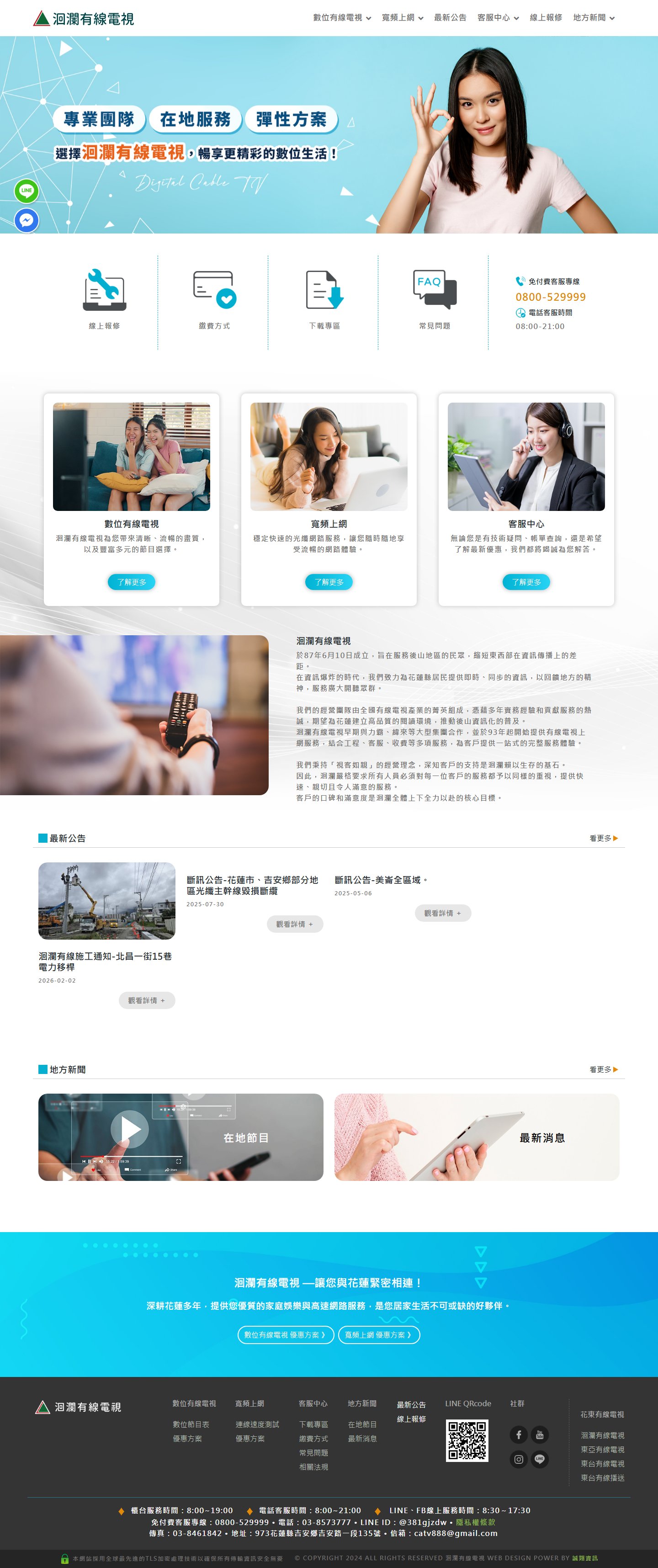 為「東亞有線電視—花蓮在地的資訊橋樑」設計開發的多頁式企業網站,採用Laravel、jQue...