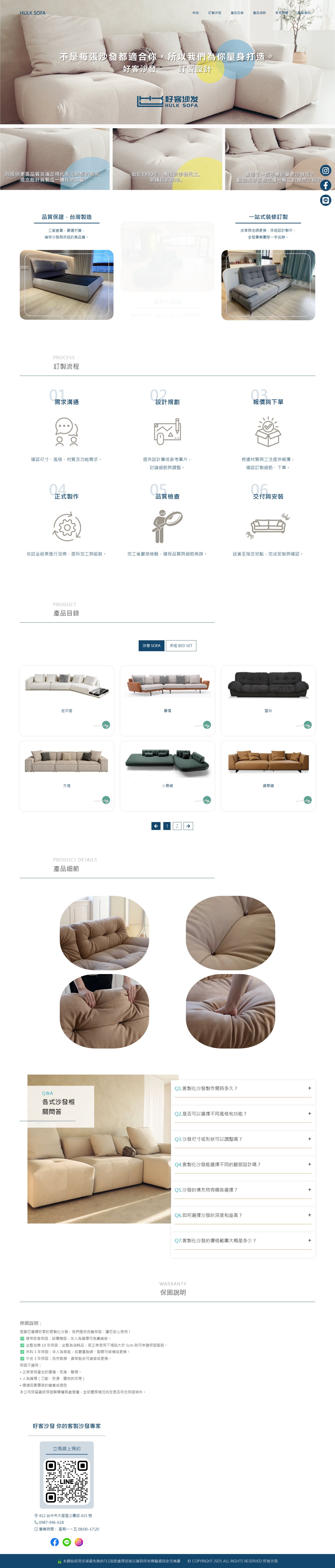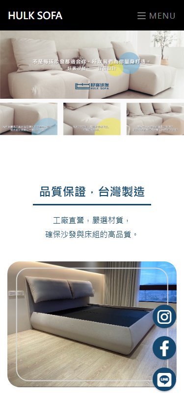 網站類型:一頁式形象網站 客戶名稱:好客沙發|客製化高品質舒適沙發 - 讓您坐享極致美好 技術架構:jQuery, Bootstrap, Next.js 網站網址:https://hulksofa.com.tw/ 本作品為「好客沙發|客製化高品質舒適沙發 - 讓您坐享極致美好」量身打造的一頁式形象網站,以單頁捲動方式呈現品牌形象與服務內容,搭配流暢的動態效果與響應式排版,提供良好的使用者體驗。 產業類別:已發布