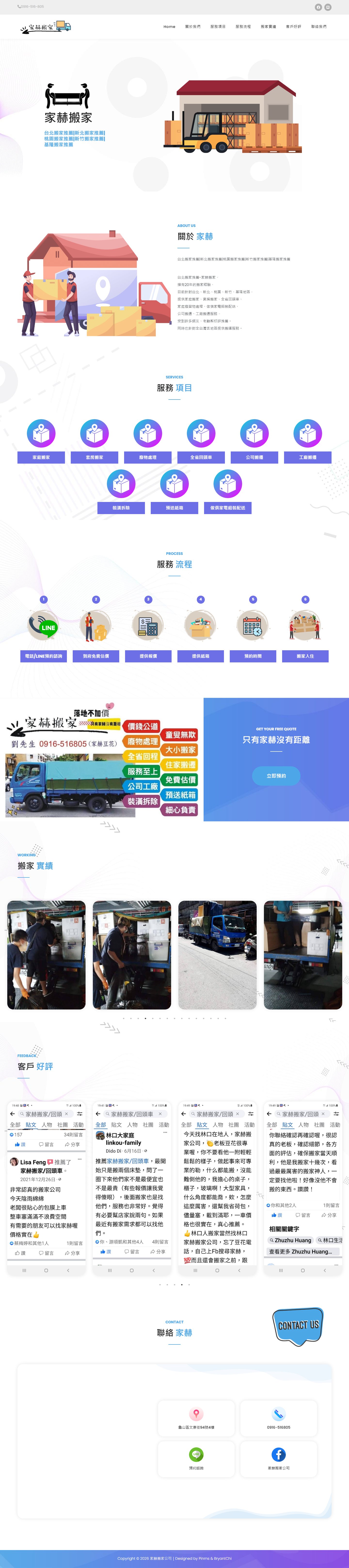 網站類型:一頁式形象網站 客戶名稱:台北搬家推薦-家赫搬家 技術架構:RWD, HTML, CSS, JavaScript 網站網址:https://pinms.com.tw/jiahe 本作品為「台北搬家推薦-家赫搬家」量身打造的一頁式形象網站,以單頁捲動方式呈現品牌形象與服務內容,搭配流暢的動態效果與響應式排版,提供良好的使用者體驗。 產業類別:已發布