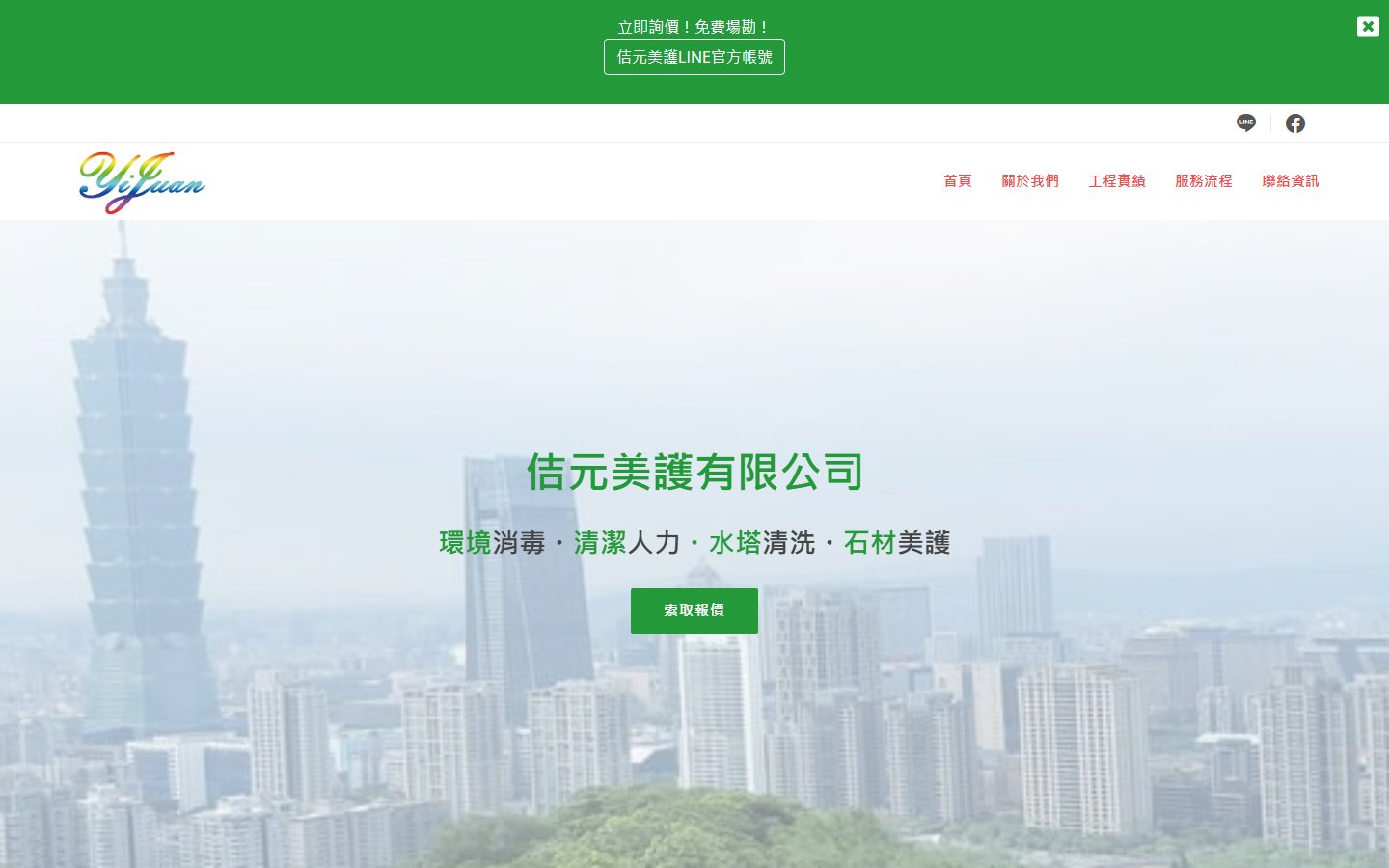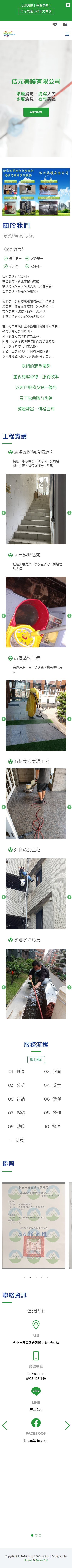 網站類型:一頁式形象網站 客戶名稱:佶元美護有限公司 技術架構:RWD, HTML, CSS, JavaScript 網站網址:https://pinms.com.tw/jiyuan-clean 本作品為「佶元美護有限公司」量身打造的一頁式形象網站,以單頁捲動方式呈現品牌形象與服務內容,搭配流暢的動態效果與響應式排版,提供良好的使用者體驗。 產業類別:已發布
