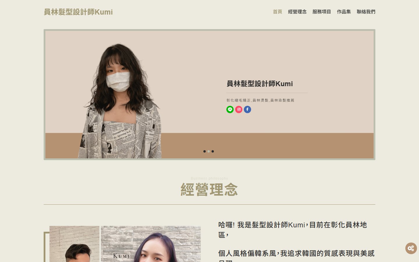 網站類型:一頁式形象網站 客戶名稱:員林髮型設計師Kumi 技術架構:RWD, HTML, CSS, JavaScript 網站網址:https://pinms.com.tw/kumi-del 本作品為「員林髮型設計師Kumi」量身打造的一頁式形象網站,以單頁捲動方式呈現品牌形象與服務內容,搭配流暢的動態效果與響應式排版,提供良好的使用者體驗。 產業類別:已發布