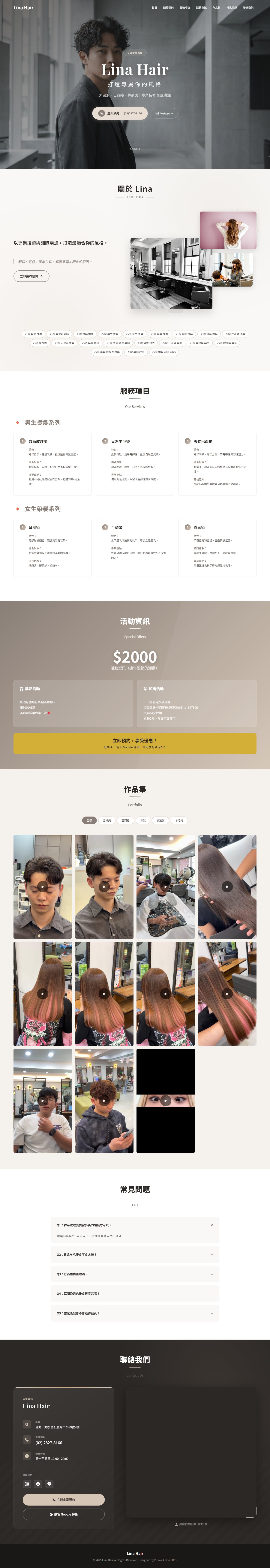 網站類型:一頁式形象網站 客戶名稱:石牌燙髮推薦=Lina Hair 技術架構:RWD, HTML, CSS, JavaScript 網站網址:https://pinms.com.tw/lina-hair 本作品為「石牌燙髮推薦=Lina Hair」量身打造的一頁式形象網站,以單頁捲動方式呈現品牌形象與服務內容,搭配流暢的動態效果與響應式排版,提供良好的使用者體驗。 產業類別:已發布