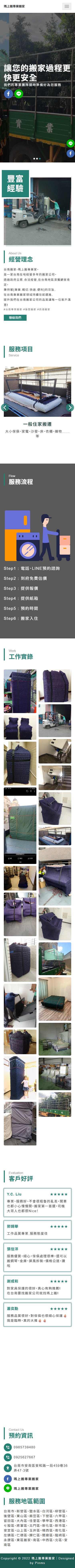 網站類型:一頁式形象網站 客戶名稱:瑪上搬專業搬家 技術架構:RWD, HTML, CSS, JavaScript 網站網址:https://pinms.com.tw/mashang-move 本作品為「瑪上搬專業搬家」量身打造的一頁式形象網站,以單頁捲動方式呈現品牌形象與服務內容,搭配流暢的動態效果與響應式排版,提供良好的使用者體驗。 產業類別:已發布