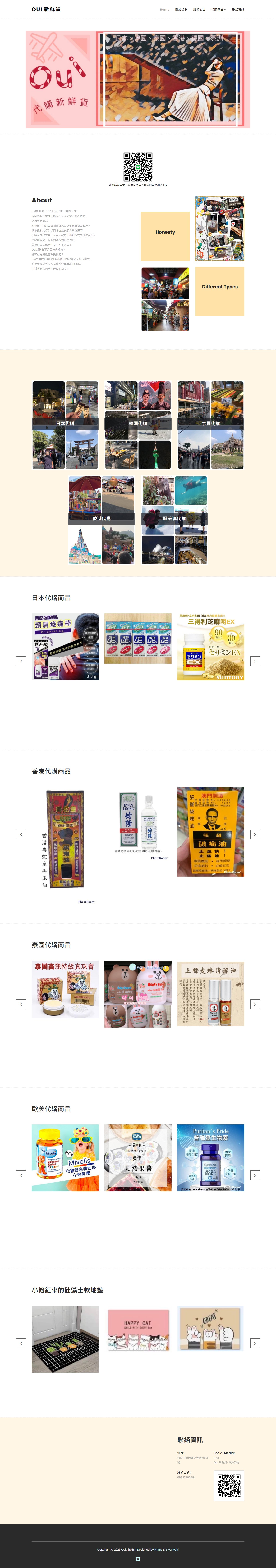 網站類型:一頁式形象網站 客戶名稱:Oui 新鮮貨 技術架構:RWD, HTML, CSS, JavaScript 網站網址:https://pinms.com.tw/oui-purchasing-agent 本作品為「Oui 新鮮貨」量身打造的一頁式形象網站,以單頁捲動方式呈現品牌形象與服務內容,搭配流暢的動態效果與響應式排版,提供良好的使用者體驗。 產業類別:已發布