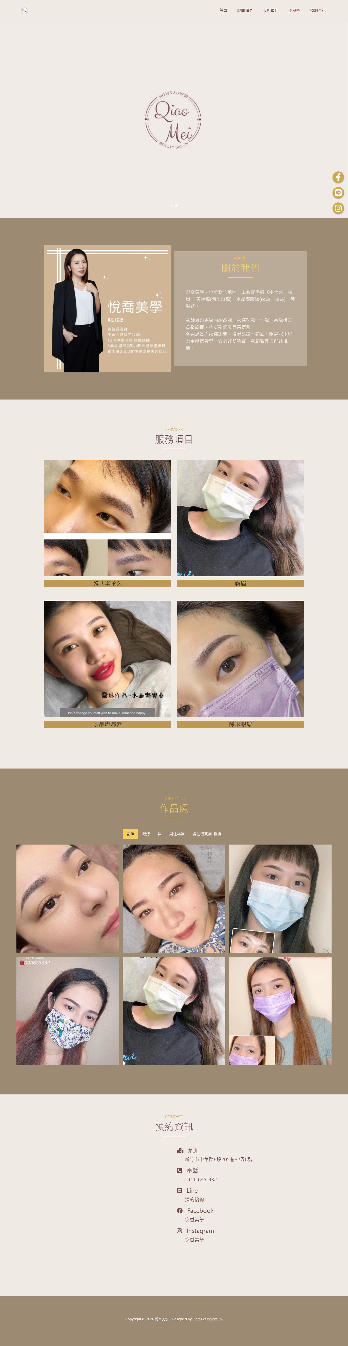 網站類型:一頁式形象網站 客戶名稱:悅喬美學 技術架構:RWD, HTML, CSS, JavaScript 網站網址:https://pinms.com.tw/qiaomei-eyebrow 本作品為「悅喬美學」量身打造的一頁式形象網站,以單頁捲動方式呈現品牌形象與服務內容,搭配流暢的動態效果與響應式排版,提供良好的使用者體驗。 產業類別:已發布