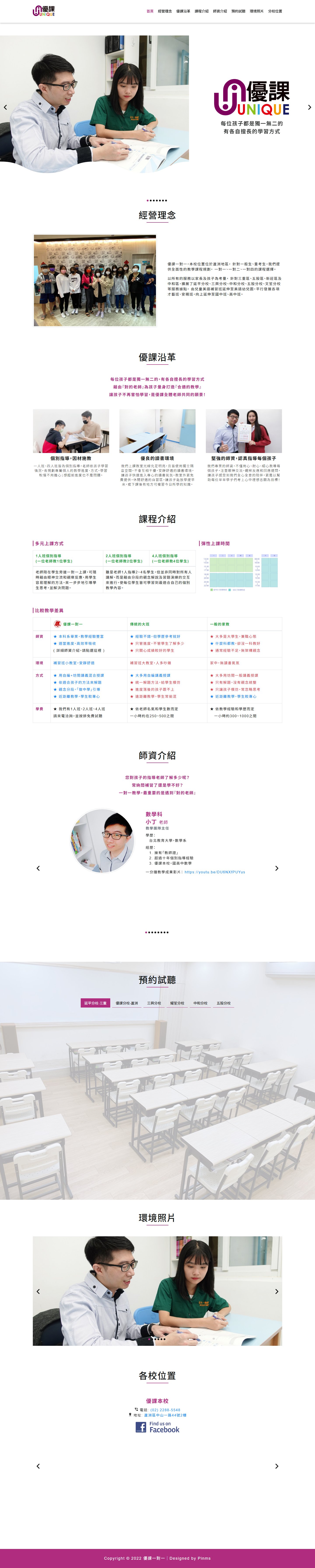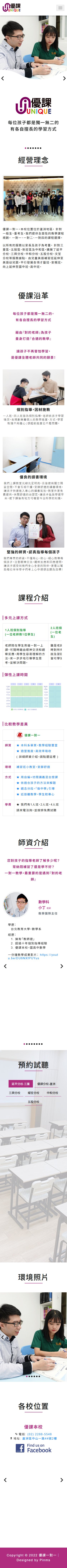 網站類型:一頁式形象網站 客戶名稱:優課一對一 技術架構:RWD, HTML, CSS, JavaScript 網站網址:https://pinms.com.tw/unique-class 本作品為「優課一對一」量身打造的一頁式形象網站,以單頁捲動方式呈現品牌形象與服務內容,搭配流暢的動態效果與響應式排版,提供良好的使用者體驗。 產業類別:已發布