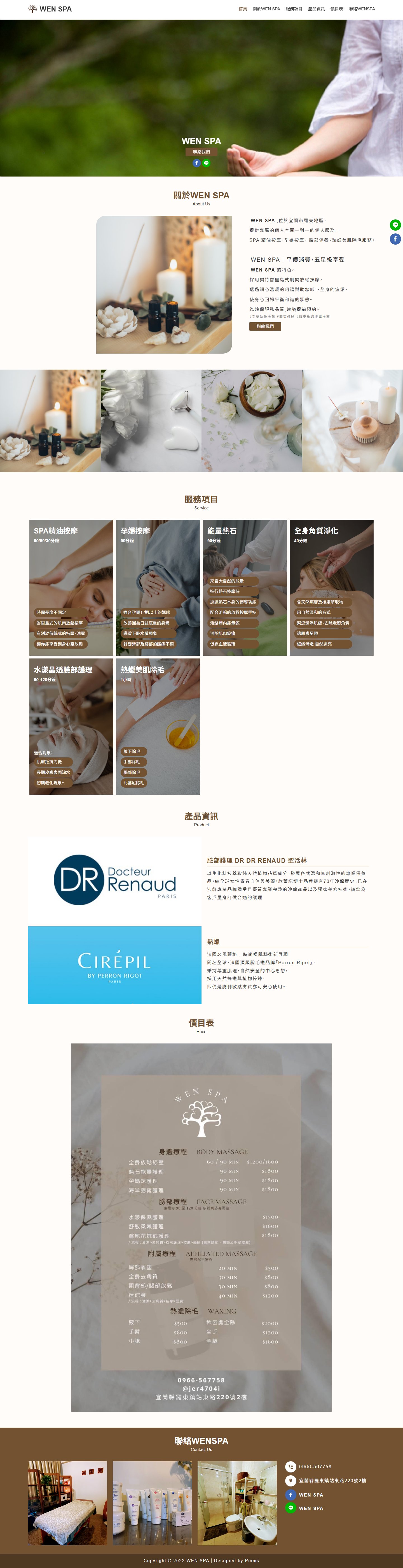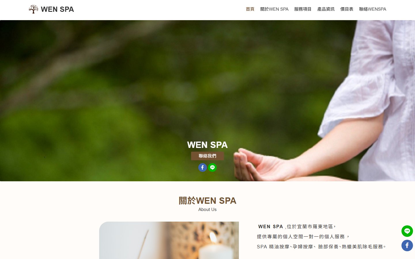 網站類型:一頁式形象網站 客戶名稱:WEN SPA 技術架構:RWD, HTML, CSS, JavaScript 網站網址:https://pinms.com.tw/wenspa 本作品為「WEN SPA」量身打造的一頁式形象網站,以單頁捲動方式呈現品牌形象與服務內容,搭配流暢的動態效果與響應式排版,提供良好的使用者體驗。 產業類別:已發布