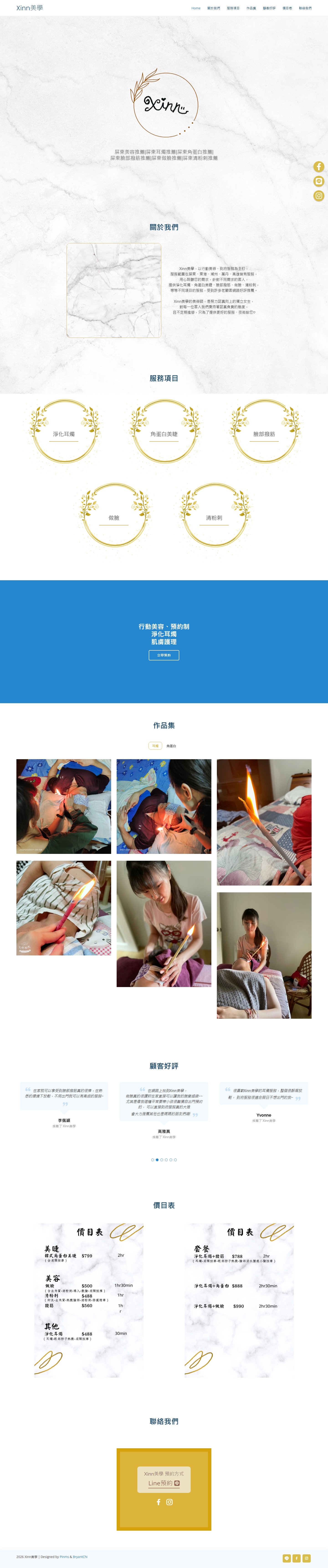 網站類型:一頁式形象網站 客戶名稱:Xinn美學 技術架構:RWD, HTML, CSS, JavaScript 網站網址:https://pinms.com.tw/xinn-beauty 本作品為「Xinn美學」量身打造的一頁式形象網站,以單頁捲動方式呈現品牌形象與服務內容,搭配流暢的動態效果與響應式排版,提供良好的使用者體驗。 產業類別:已發布