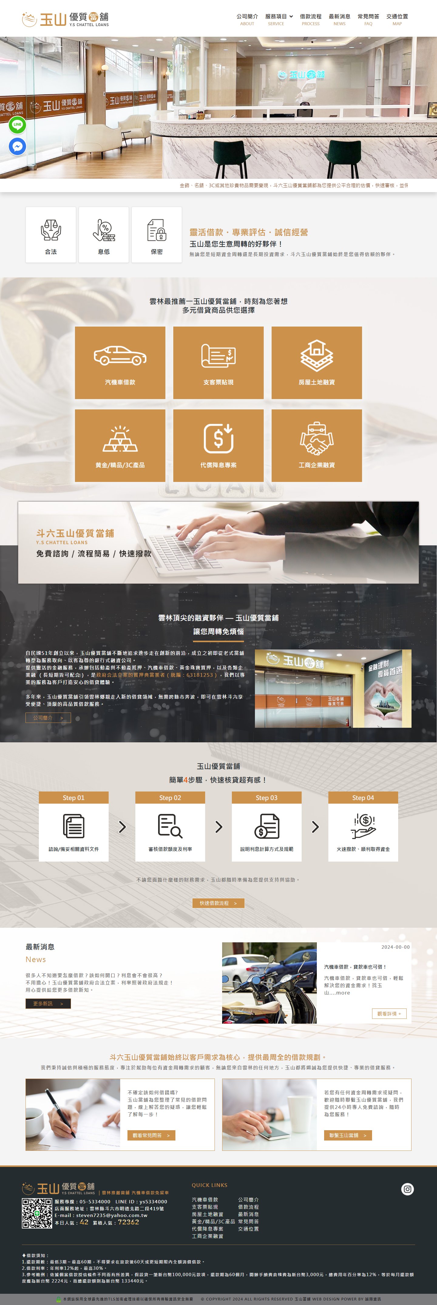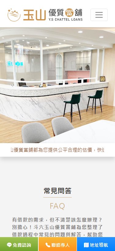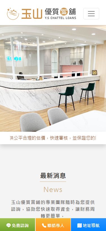 網站類型:多頁式企業網站 客戶名稱:雲林,斗六::當鋪推薦∣玉山當舖官方網站-專營汽車借款,機車借款,汽車二胎,支客 技術架構:Laravel, jQuery, Bootstrap 網站網址:https://ysloans.tw 本作品為「雲林,斗六::當鋪推薦∣玉山當舖官方網站-專營汽車借款,機車借款,汽車二胎,支客」量身打造的多頁式企業網站。網站採用響應式設計,確保在不同裝置上均有良好的瀏覽體驗。 產業類別:已發布