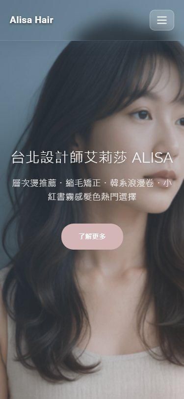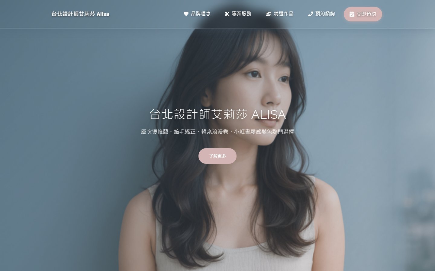本專案為台北燙染設計師「ALISA」打造專屬品牌形象網站,從技術定位、風格設計到預約轉換流程進行整體規劃,強化專業形象與市場差異化。