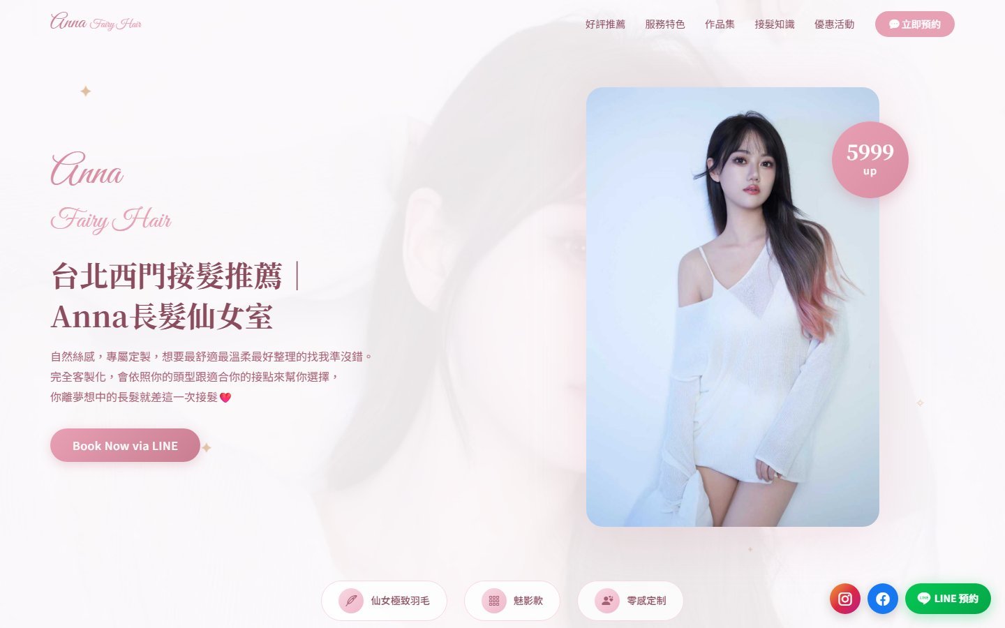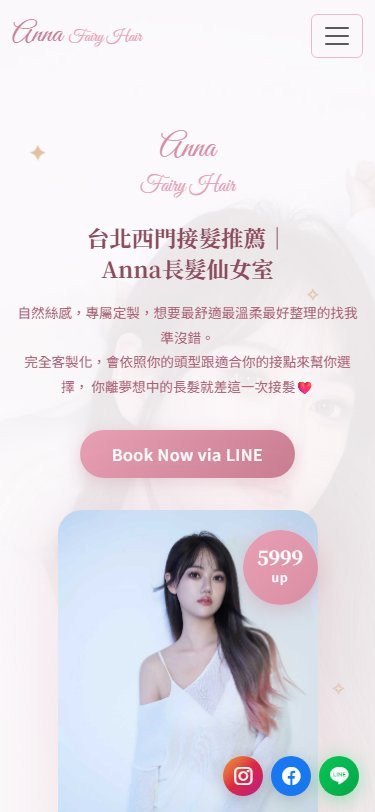 本專案為台北西門接髮設計師「ANNA」打造專屬品牌形象網站,從在地搜尋策略、服務定位到預約轉換流程進行整體規劃,協助快速導入有接髮需求的精準客群。