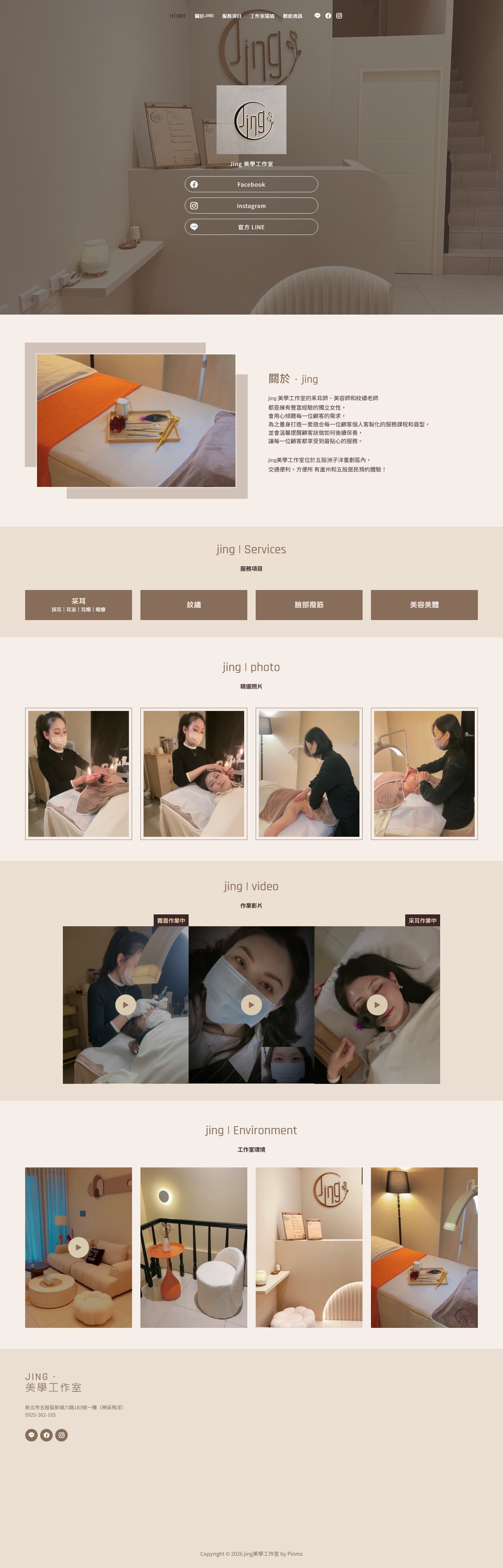 本案為「jing美學工作室」打造專屬品牌形象網站,透過簡約細緻的視覺設計與柔和排版,呈現美學服務的專業形象與質感體驗,提升整體品牌信任度。