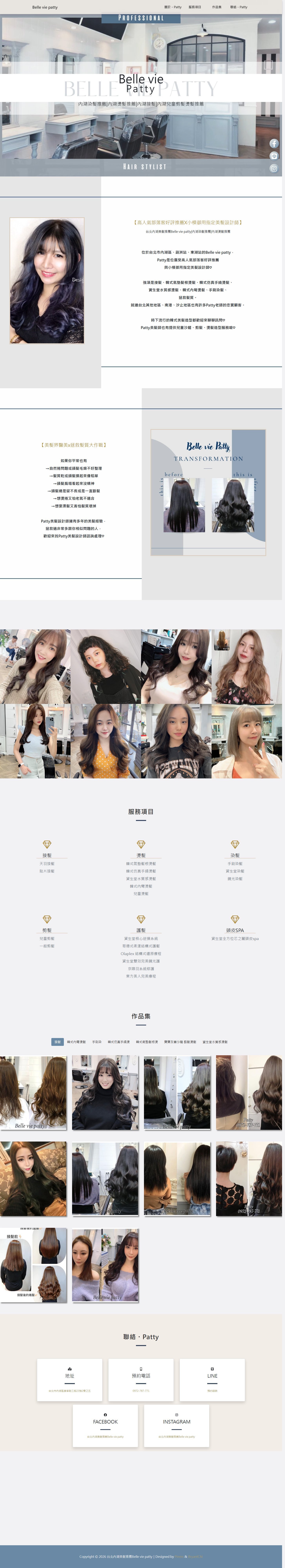 本專案為台北內湖質感髮廊「BELLE VIE PATTY」打造專屬品牌形象網站,從品牌定位、視覺風格到預約轉換流程進行整體規劃,提升品牌專業形象與市場競爭力。