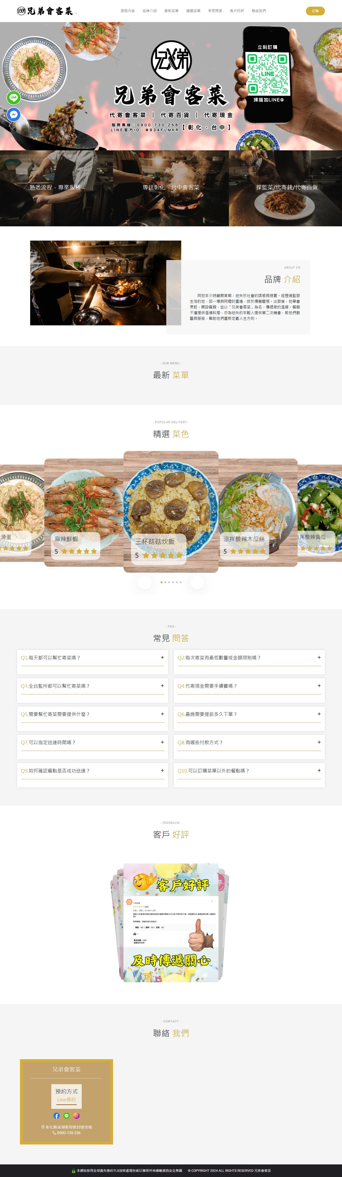 本案為「兄弟會客菜」打造中式餐廳品牌形象網站,透過視覺氛圍與內容呈現設計,強化品牌質感並提升用戶用餐期待感。