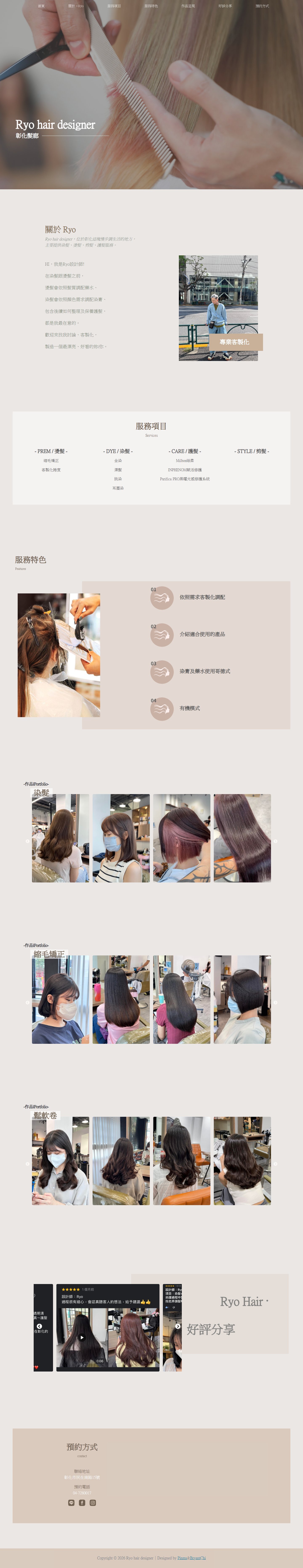 本案為彰化地區髮型設計師「Ryo」打造專屬品牌形象網站,以「客製化髮型設計」為核心定位,強調依照每位顧客臉型與風格打造專屬造型。