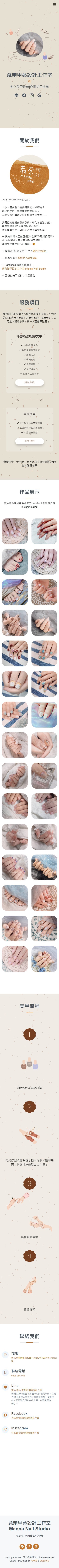 本專案為彰化「Manna Nail Studio」打造專屬品牌形象網站,從品牌風格、服務定位到預約流程進行整體規劃,提升顧客回訪率與品牌質感。