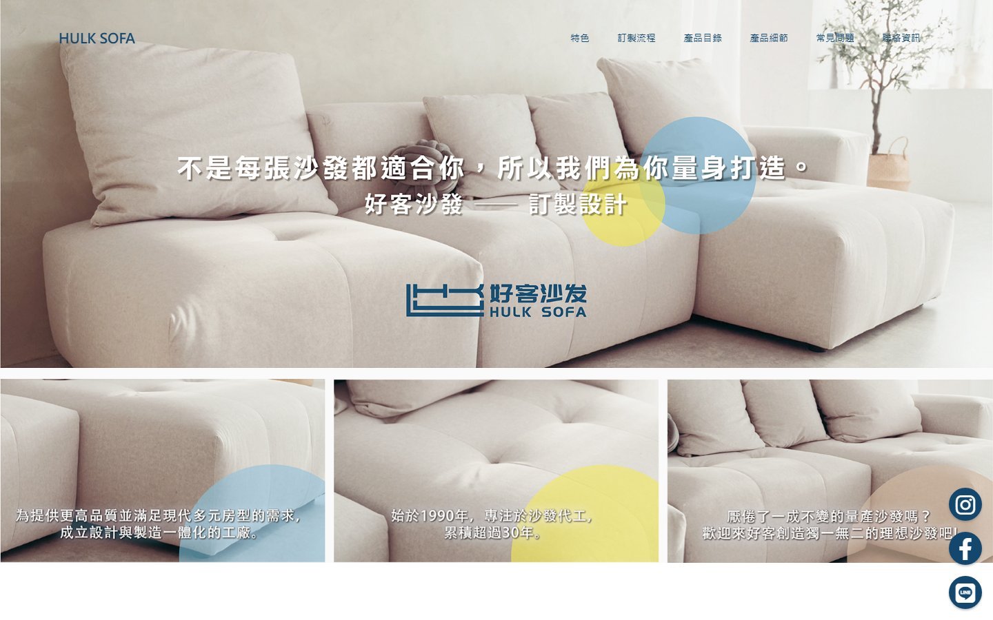 本案為「好客沙發 HULK SOFA」打造專屬品牌形象網站,透過沉穩質感的視覺設計與產品展示規劃,強化客製化沙發的品牌價值與空間美學。