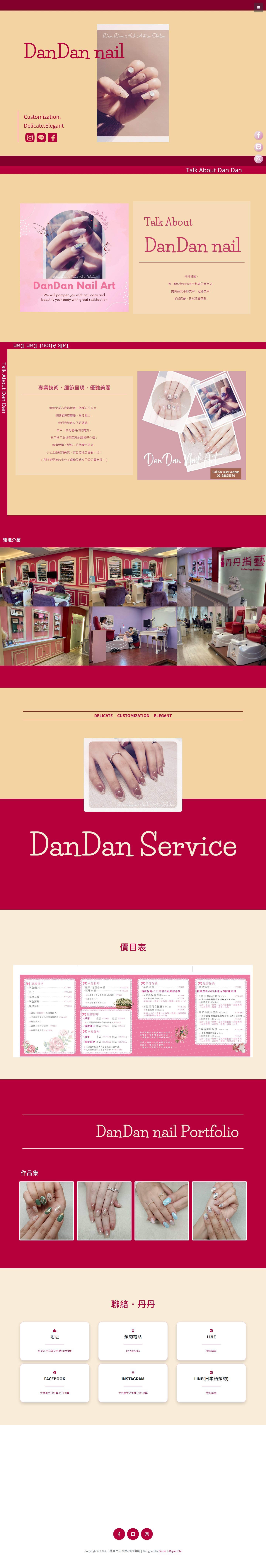 本專案為士林美甲品牌「DANDAN NAIL」打造專屬品牌形象網站,從風格定位、視覺設計到預約轉換流程進行整體規劃,強化品牌質感與市場競爭力。