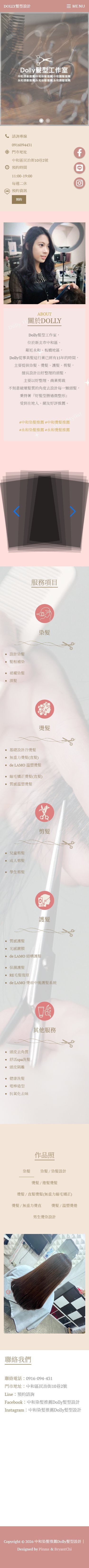 本案為「Dolly髮型工作室」打造品牌形象網站,透過風格化視覺設計與版面編排,呈現髮型設計作品與個人風格,提升品牌專業形象與顧客信任度。