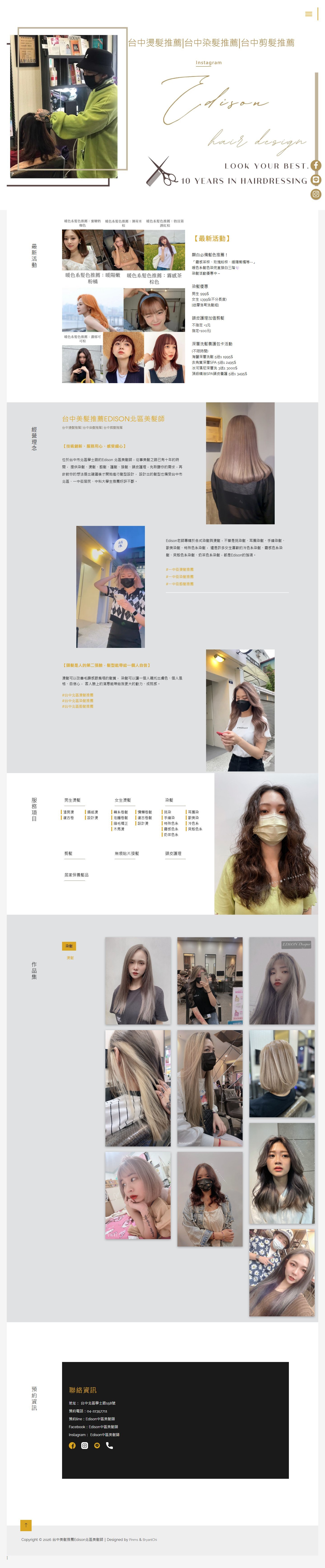 本專案為台中北區美髮設計師「EDISON」打造專屬品牌形象網站,從在地搜尋策略、品牌定位到預約轉換流程進行整體規劃,協助提升曝光與穩定導入客源。