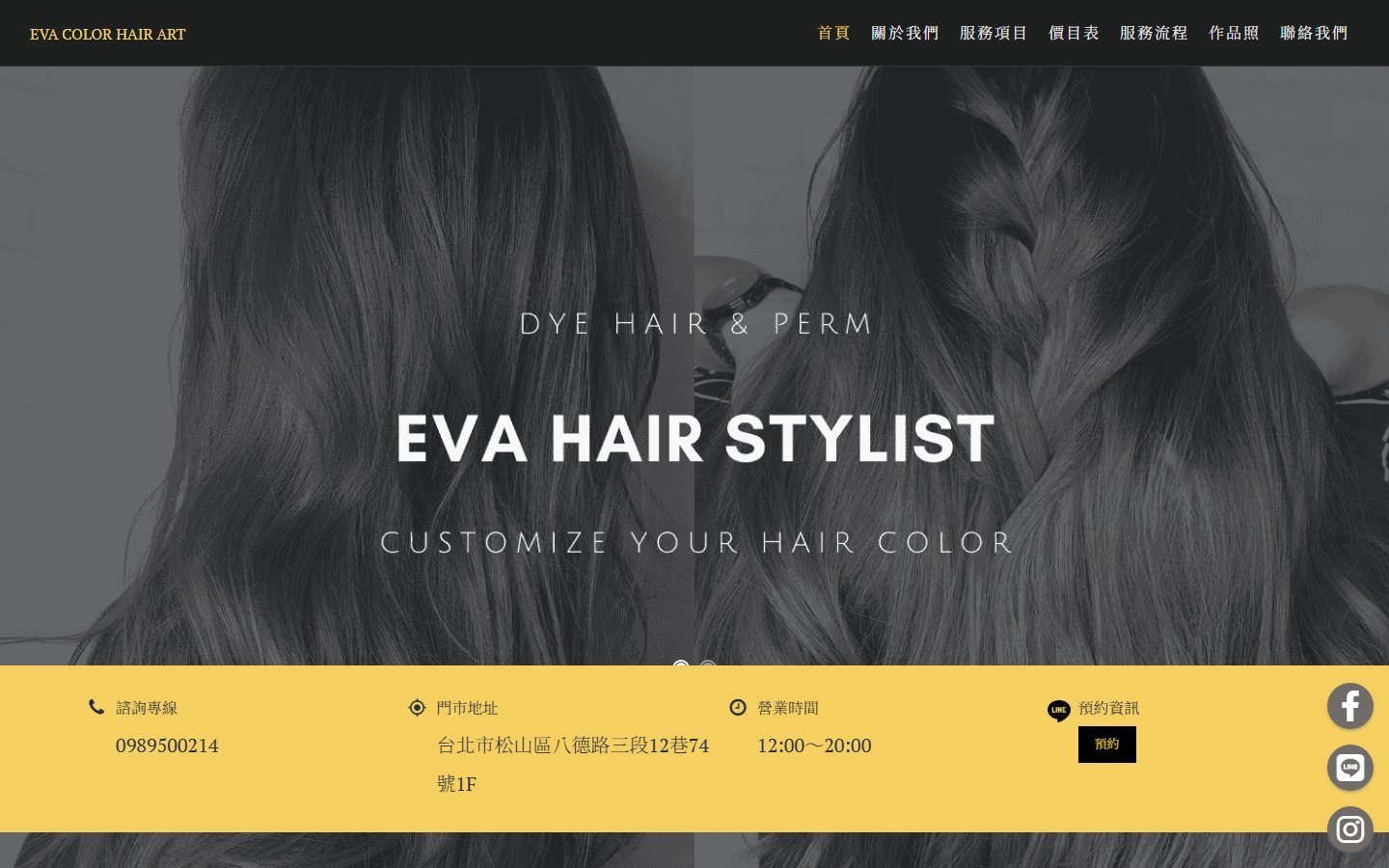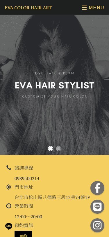 本專案為台北大安區染髮設計品牌「EVA COLOR HAIR ART」打造專屬品牌形象網站,從品牌定位、色彩風格到預約轉換流程進行整體規劃,強化專業形象與市場差異化。