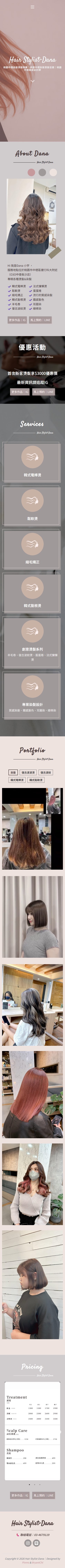 本案為「Dana髮型設計師」打造個人品牌形象網站,透過風格化視覺設計與版面編排,呈現設計師作品與個人特色,強化專業形象與市場辨識度。
