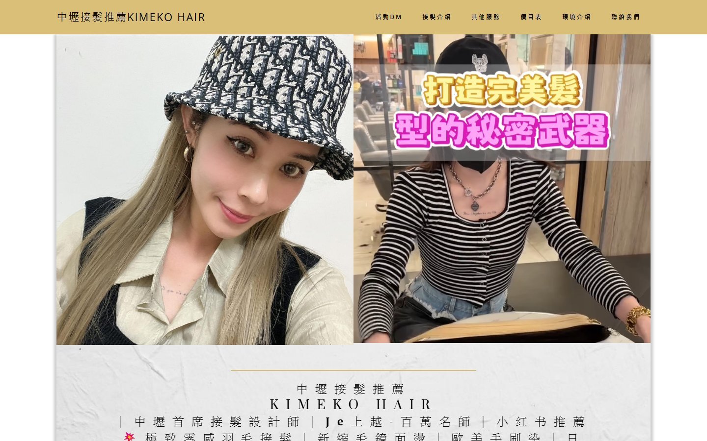 本案為「KIMEKO HAIR」打造品牌形象網站,透過細緻質感的視覺設計與版面編排,呈現接髮成果與整體造型風格,提升品牌專業度與高端形象。