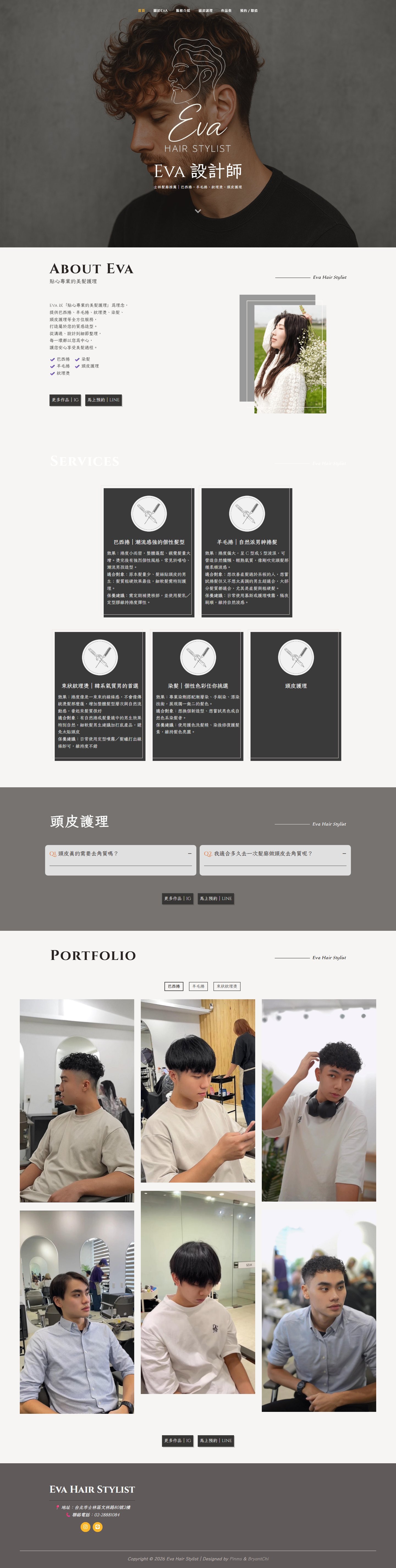 本案為「Eva髮型設計師」打造個人品牌形象網站,透過風格化視覺設計與版面編排,呈現設計師作品與個人特色,強化專業形象與市場辨識度。