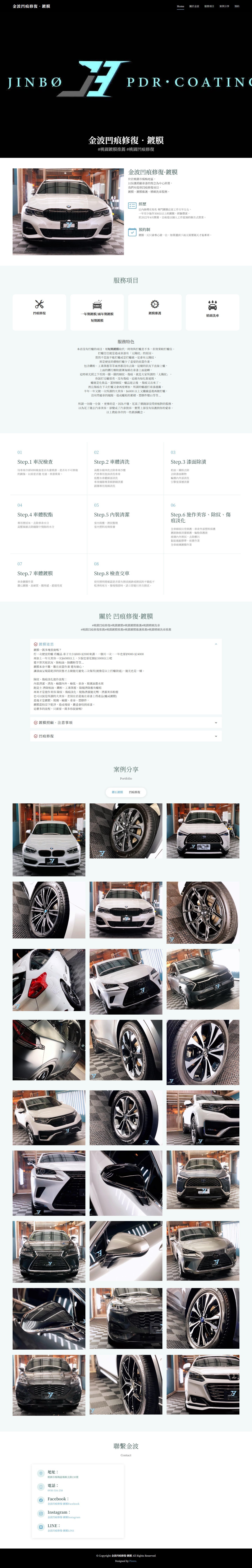 本案為「JINBO金波鍍膜」打造汽車美容品牌網站,透過專業形象與視覺呈現,強化車主對修復技術與服務品質的信任感。