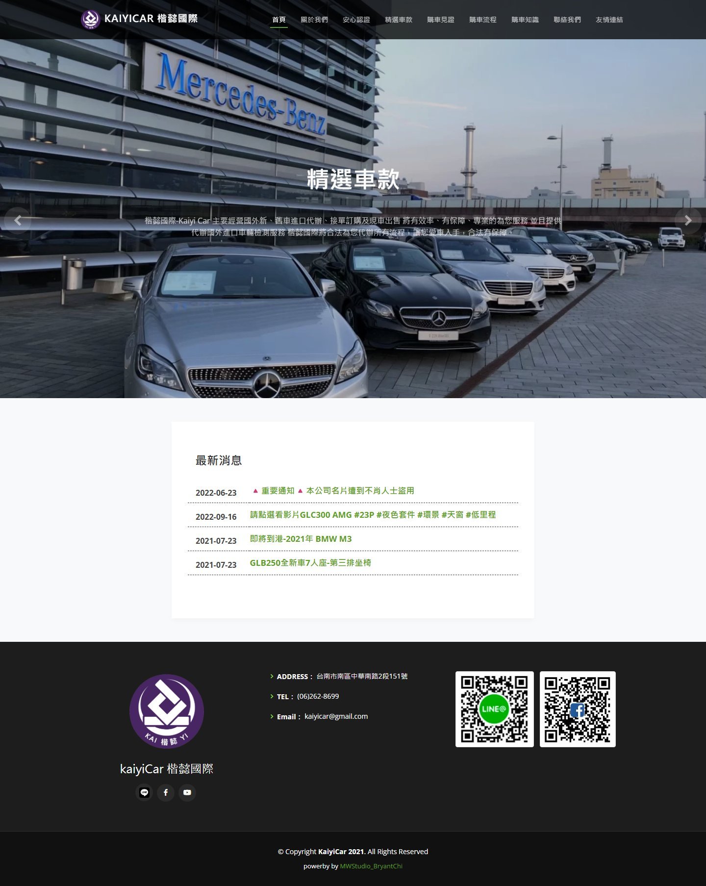 本案為「楷懿國際汽車」打造官方網站,透過質感視覺設計與清晰車款展示,強化品牌專業形象並提升消費者信任度。
