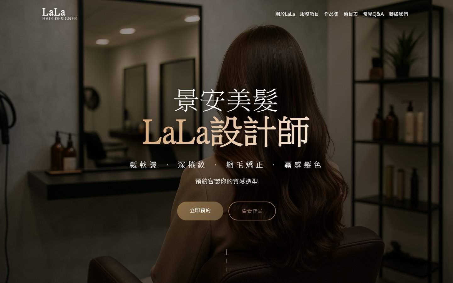 本專案為景安技術型髮廊「LALA HAIR」打造專屬品牌形象網站,從技術定位、在地市場到預約轉換流程進行整體規劃,提升品牌曝光與穩定客源。