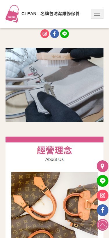 本案為「CLEAN名牌包清潔維修保養」打造品牌形象網站,透過高質感視覺設計與內容呈現,強化用戶對服務專業度與安全性的信任感。