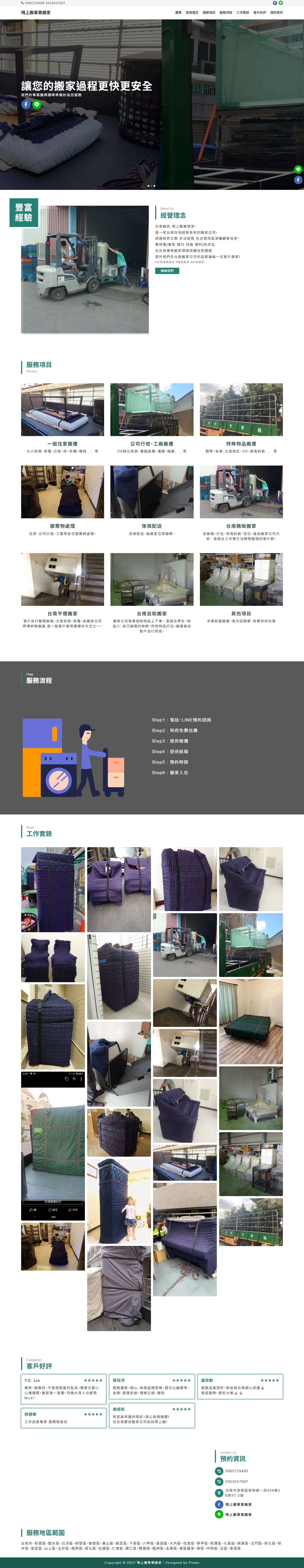 網站採一頁式架構設計,快速呈現服務項目與搬家流程,並優化行動裝置瀏覽體驗,讓使用者能在最短時間內取得資訊並完成聯絡,有效提升接單效率與轉換率。