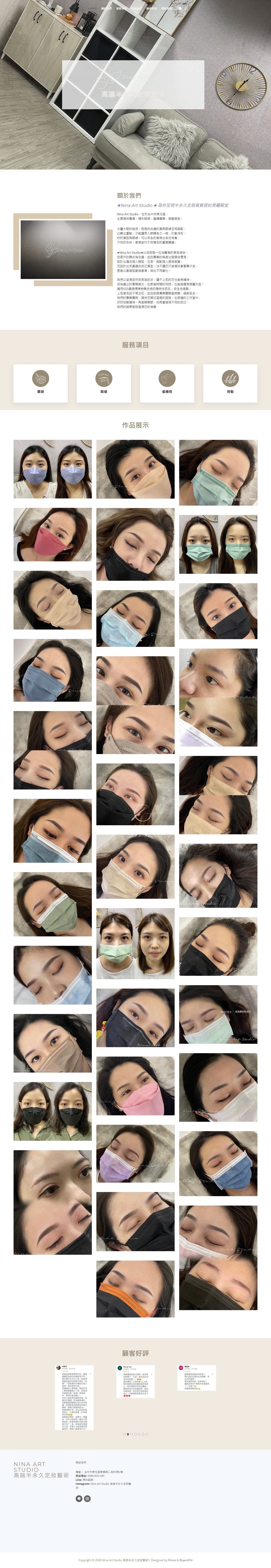 本案為「Nina Art Studio 半永久定妝美學」打造專屬品牌形象網站,透過細緻柔和的視覺設計與作品呈現,強化定妝效果的自然美感與專業技術形象,提升品牌信任度與高端定位。