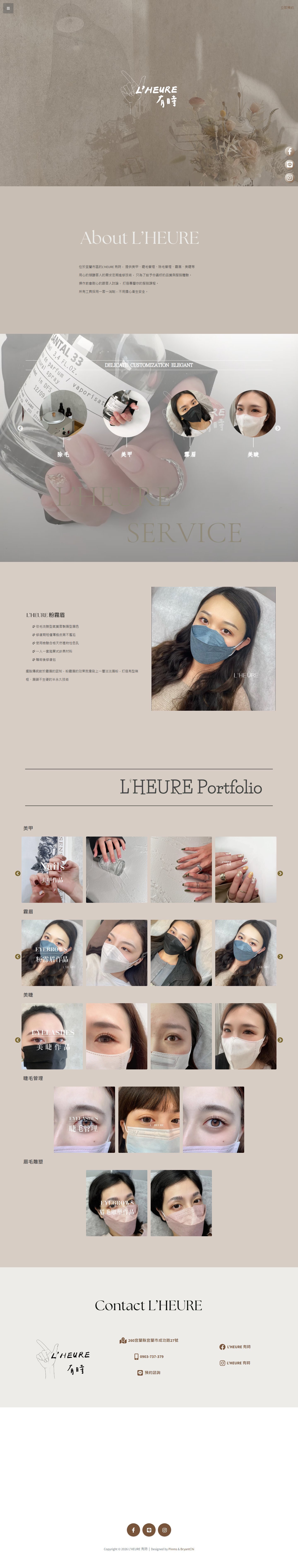 本案為「L’HEURE 有時」打造高質感粉霧眉品牌形象網站,透過細膩的視覺設計與版面規劃,強化品牌專業度與信任感,讓顧客在瀏覽過程中快速建立安心感。