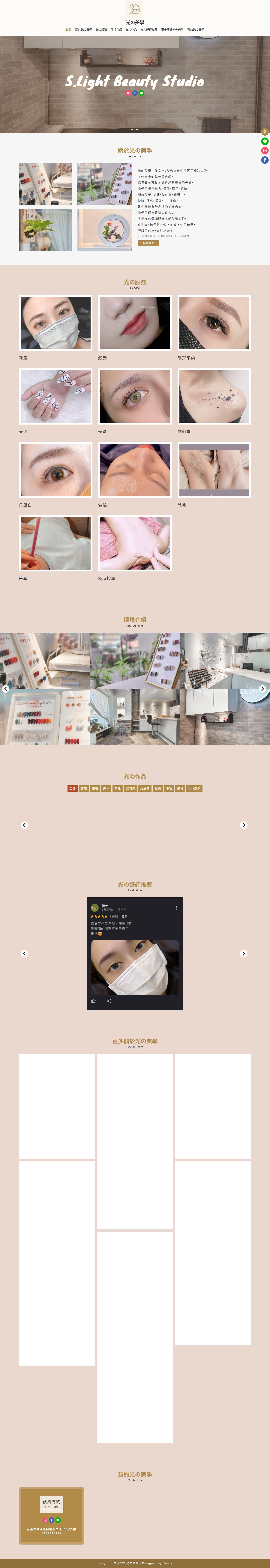 本專案為台南美甲美學品牌「S.LIGHT」打造專屬品牌形象網站,從品牌定位、視覺風格到顧客預約動線進行整體規劃,協助建立高質感與高信任的品牌形象。