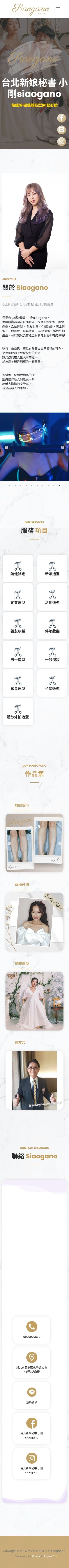 網站類型:個人品牌形象與預約轉換網站 客戶名稱:Siaogano 小剛 產業類別:婚禮服務 / 新娘秘書 網站網址:https://pinms.com.tw/siaoganostylist 專案內容: 本案為「Siaogano 小剛」打造專屬新娘秘書品牌形象網站,透過高質感婚紗視覺與精緻排版設計,呈現專業彩妝技術與整體造型風格,提升品牌信任感與吸引力。 網站採一頁式結構規劃,整合作品展示、服務介紹與風格定位,讓準新娘能快速了解服務特色並產生預約意願,有效提升詢問率與接案轉換率。 整體設計以「品牌質感 × 作品呈現 × 預約導流」為核心,協助建立穩定客源與長期品牌經營。 專案項目: 網站視覺設計 / 結構規劃 / 個人品牌定位 / 預約導流設計