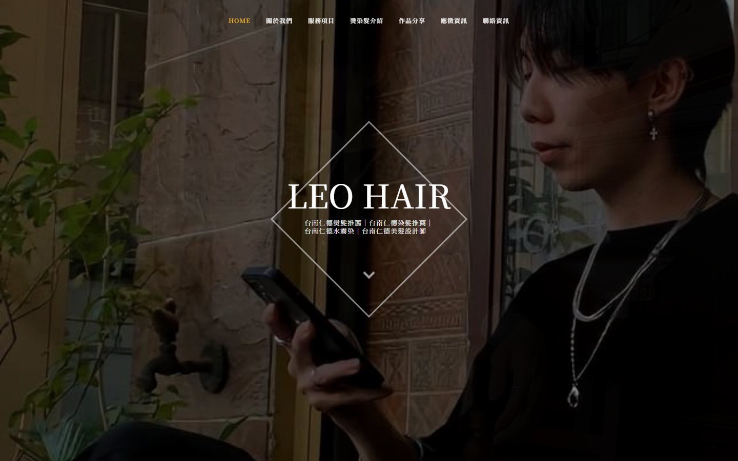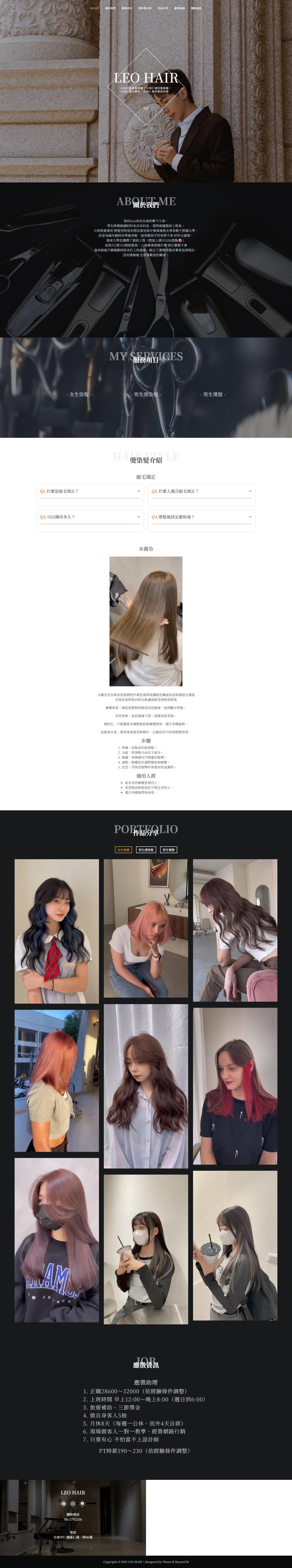 本案為台南仁德地區燙染髮設計師「LEO HAIR」打造專屬品牌形象網站,透過清晰的視覺設計與版面規劃,突顯設計師風格與專業技術。