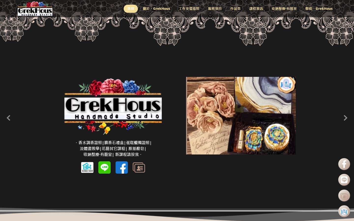 本案為「GrekHous Studio台南手作美學館」打造品牌形象網站,透過溫潤質感的視覺設計與版面編排,呈現手作體驗的氛圍與品牌風格,強化顧客對空間與課程的期待感。