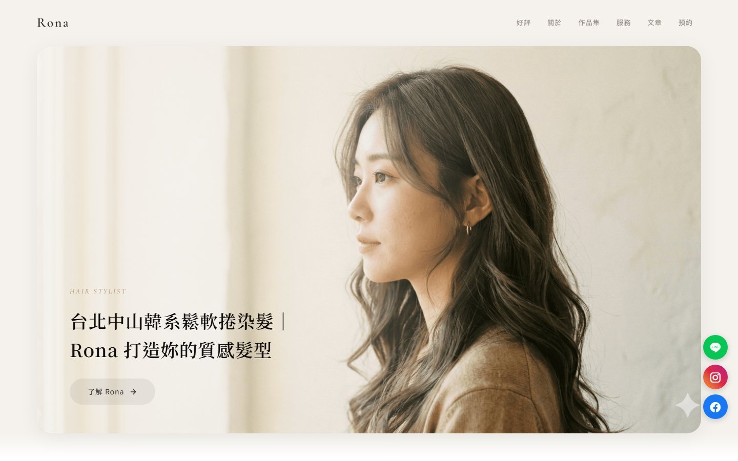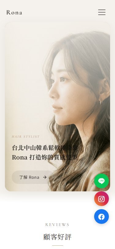 本案為台北中山區髮型設計師「Rona」打造專屬品牌形象網站,透過高質感視覺設計與精緻版面呈現,強化設計師專業形象與品牌價值。