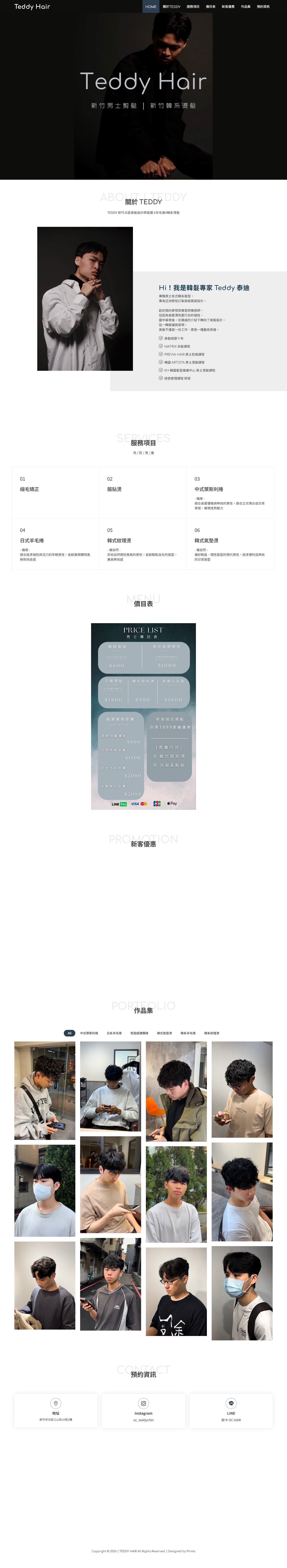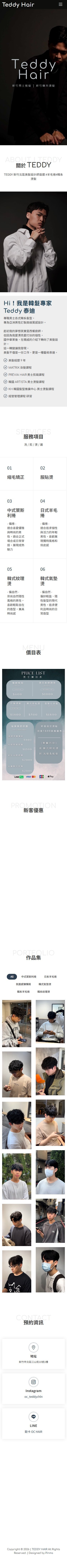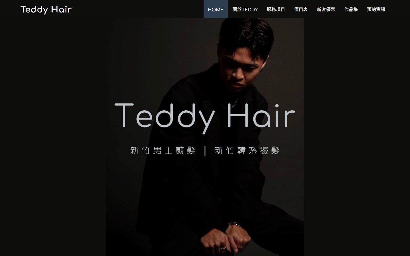 本案為「TEDDY Hair 男士髮型設計」打造專屬品牌形象網站,透過沉穩俐落的視覺風格與男性質感呈現,強化專業剪髮與造型設計形象,提升整體品牌信任度。