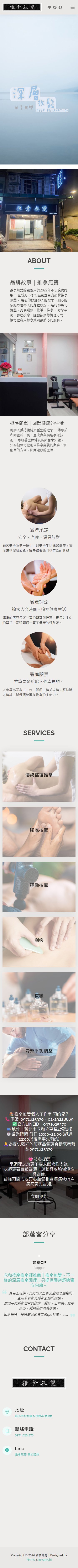 本案為「推拿無雙」打造專屬服務形象網站,透過清晰的內容規劃與簡潔視覺設計,強化整復推拿的專業形象與療效信任感。