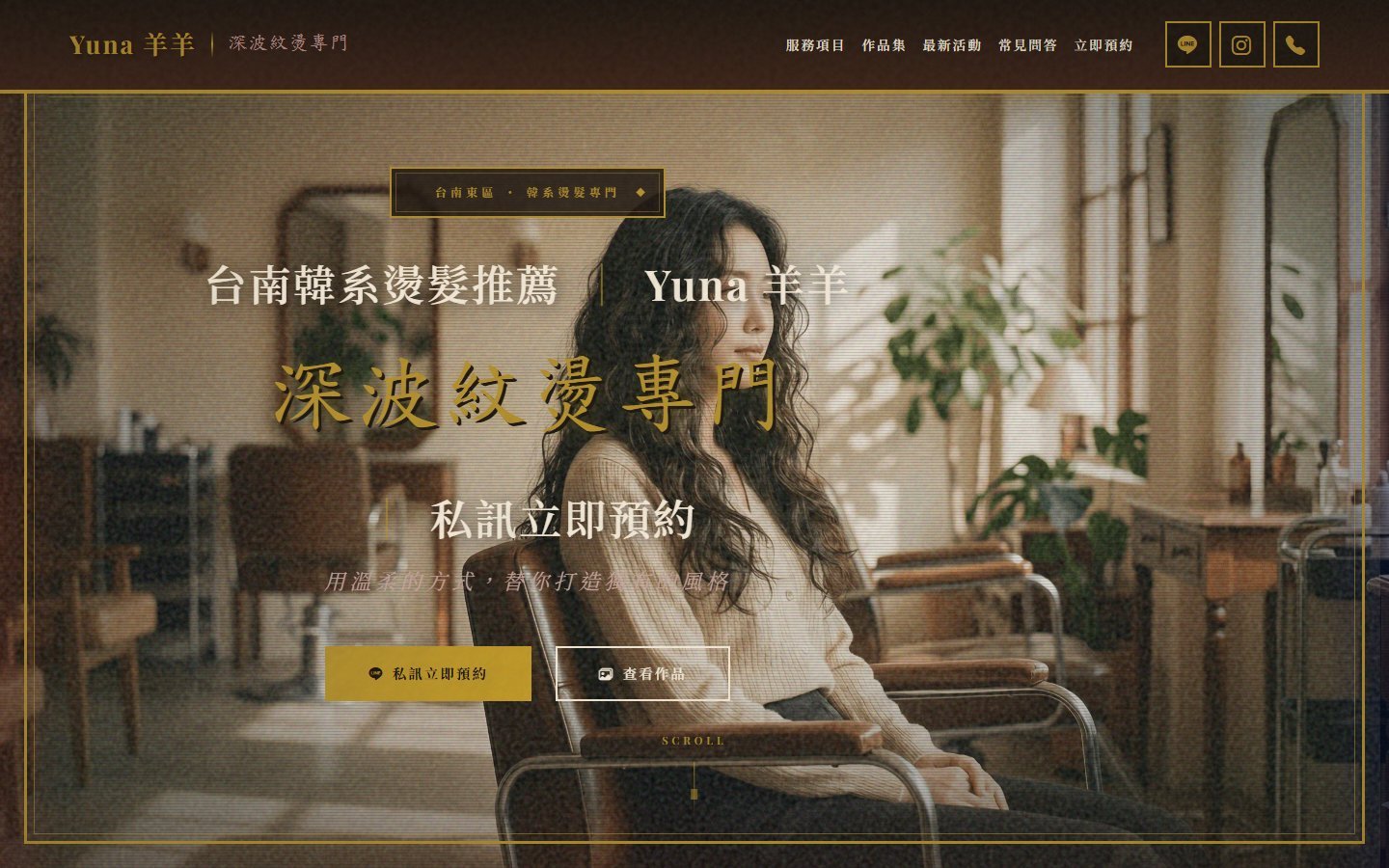 本案為「Yuna 羊羊」打造專屬髮型設計品牌形象網站,透過韓系質感視覺風格與空間氛圍呈現,強化設計師個人品牌與專業形象,提升整體吸引力。